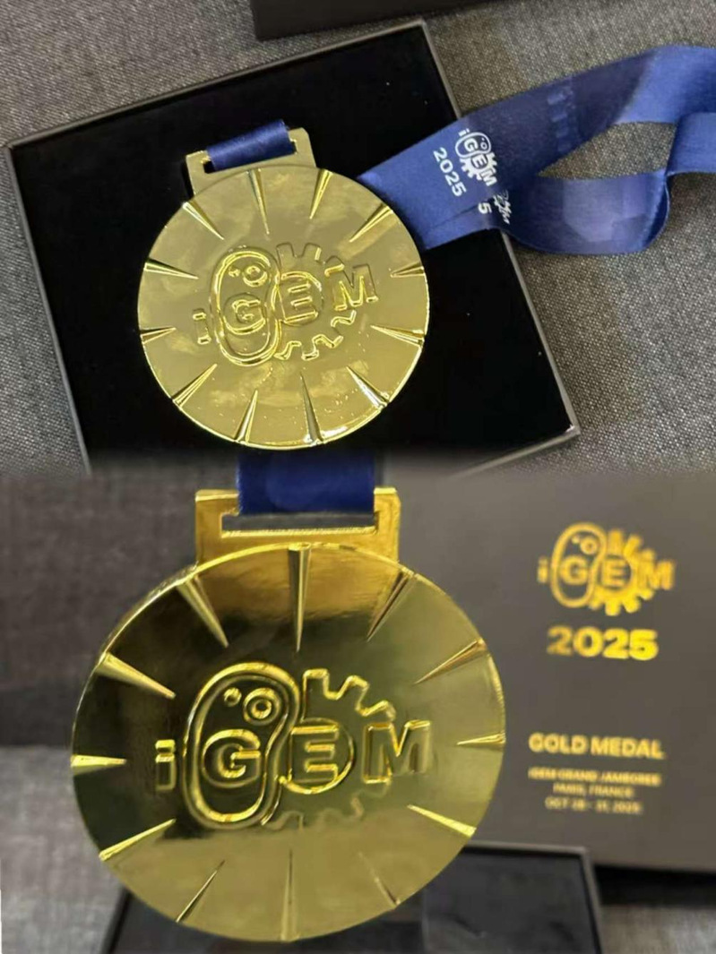图片说明:2025年iGEM大赛“双金”奖牌照片